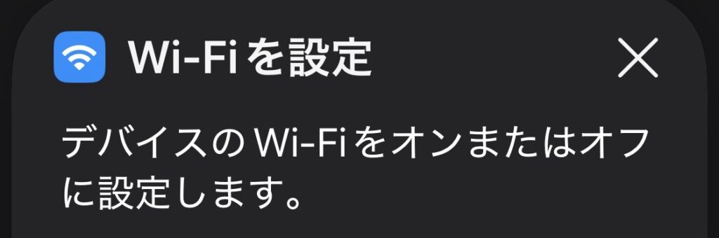 iPhoneのWi-Fiを、ショートカットからオン/オフするためのアクションです。