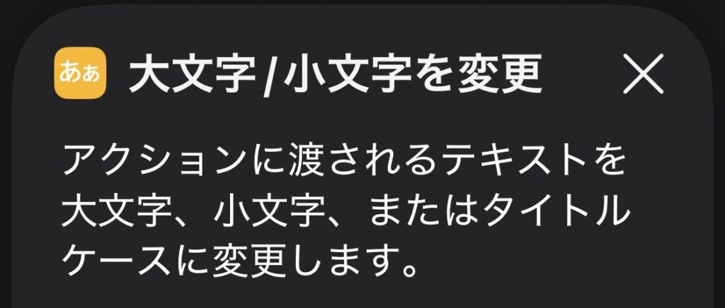 大文字・小文字・文頭のみ大文字 などに変換するアクションです。