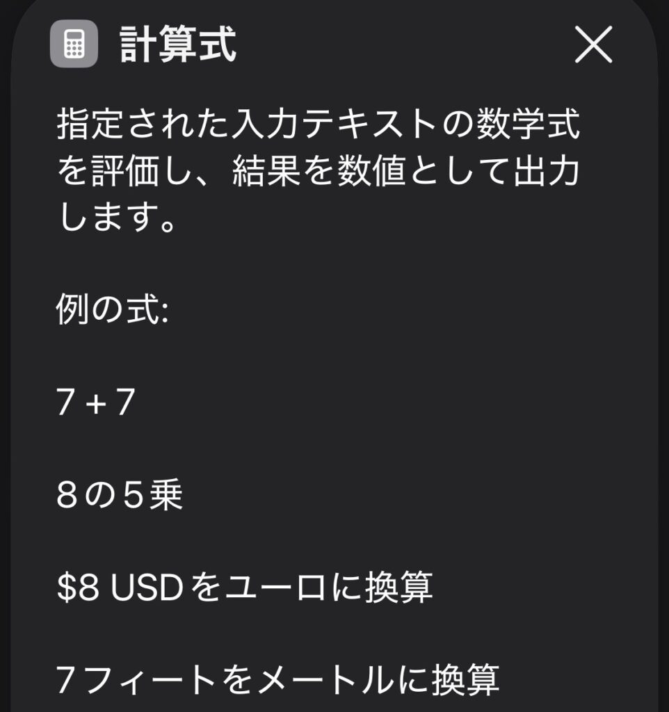 「計算」アクションよりも複数の値を扱いやすく、足し算・掛け算・割り算をまとめて書けるのが特徴です。