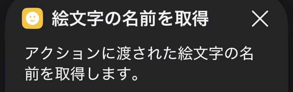 入力された 絵文字から、その正式な名前を文字として取得する アクションです。