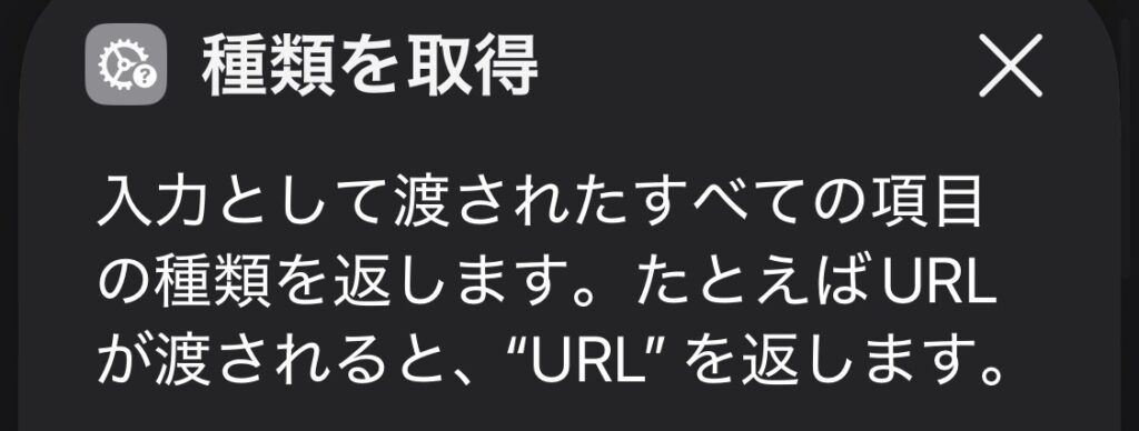 入力されたものが、ショートカットの中で 「何として扱われているか」 を教えてくれるアクションです。