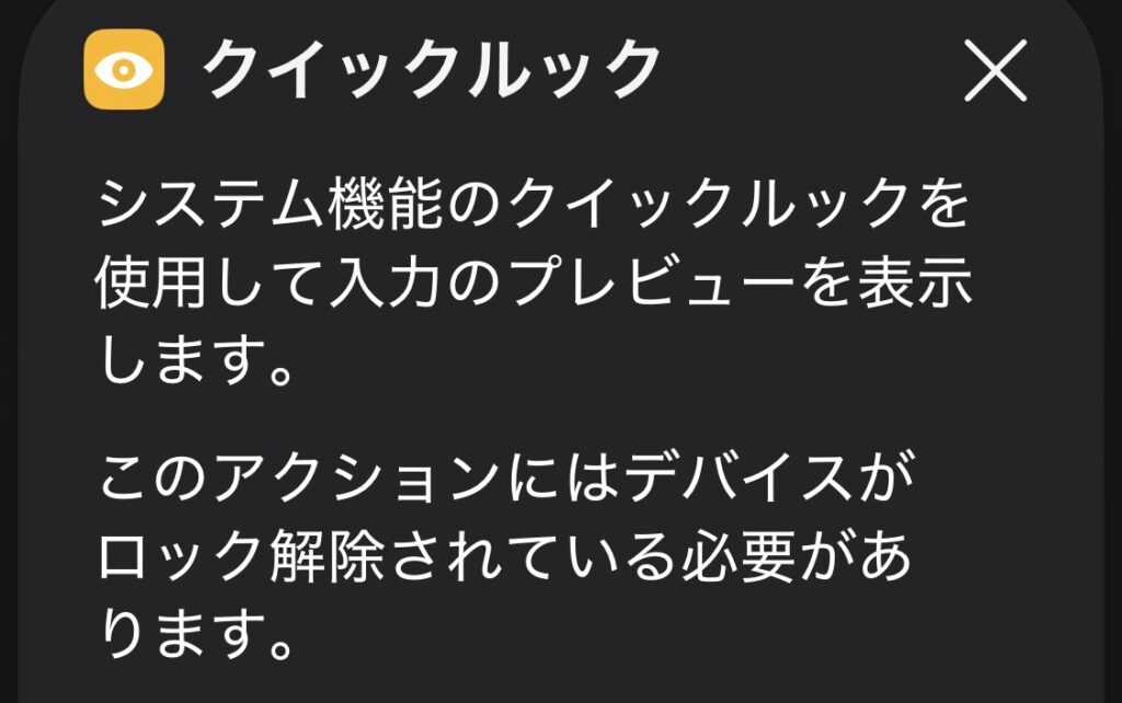 つまり、クイックルックは。処理を進める前の“目視確認”に使うアクションです。