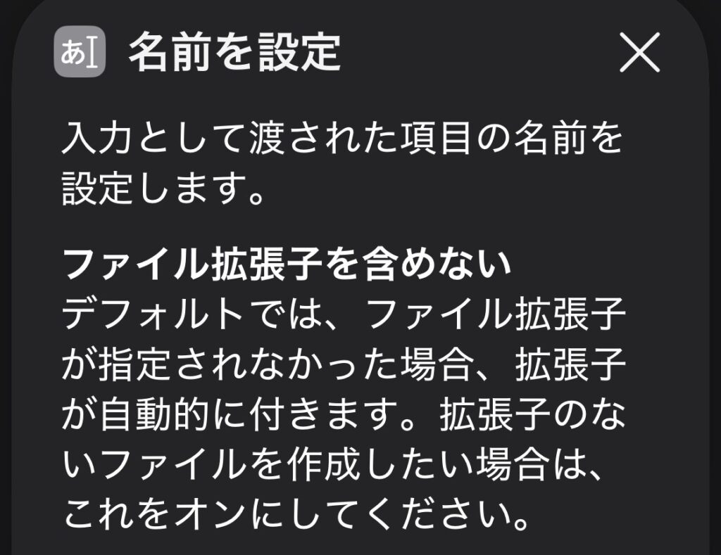 項目(ファイル・写真・メモなど)に、新しい名前を付け直すためのアクションです。