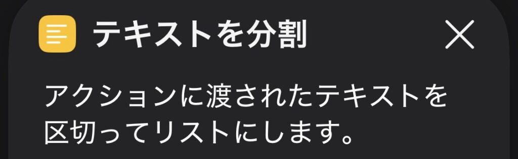 アクション【テキストを分割】